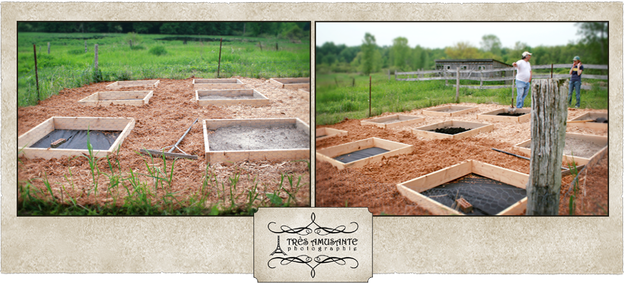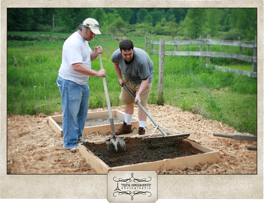 Our garden partners, Alex and Marci, stopped by one afternoon to help finish up the construction projects, but our outdoor work came to a sudden stop when we heard the sound of tornado sirens. Before we were forced indoors, Alex and Justin were able to add some peat moss to the soil.