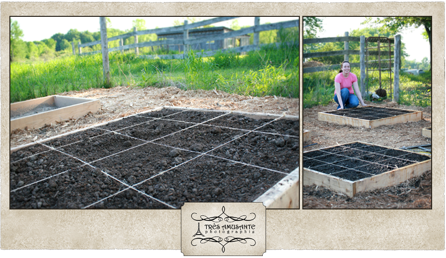 This spring, Justin had an idea. He wanted to try a different way of gardening, one that claimed to be less work and grow more in less space. The method is known as Square Foot Gardening and the concept is to create raised boxes for the soil which allow for more efficient planting. Even to me – someone with no gardening experience whatsoever – it sounded like something with promise and would work better than traditional single-row gardening.