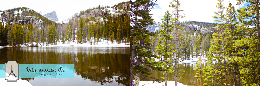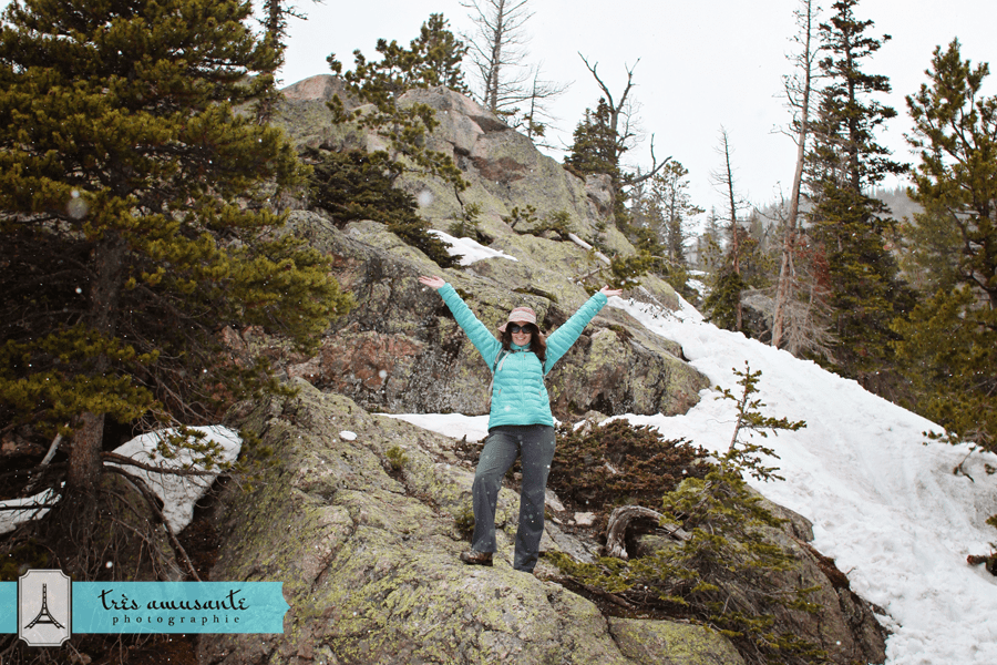 This year, the Rockies received an unseasonal three feet of snow in late May. Most of it had melted by the time we arrived, but we decided to hike around in one of the spots where it was still thawing, because apparently, it’s my secret desire to fall down in all 50 states. After slipping and sliding along on the trail, I was relieved to make it to Nymph Lake in one piece.