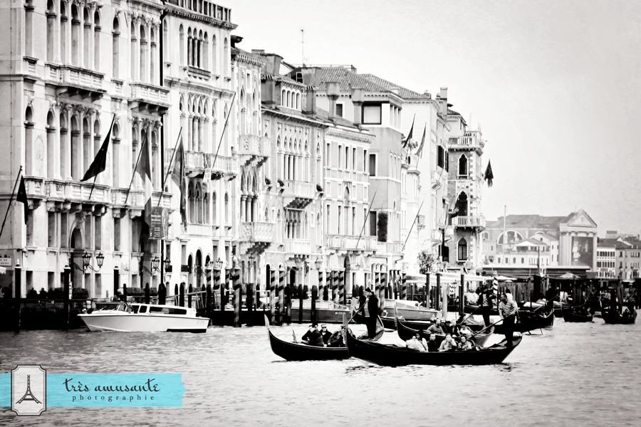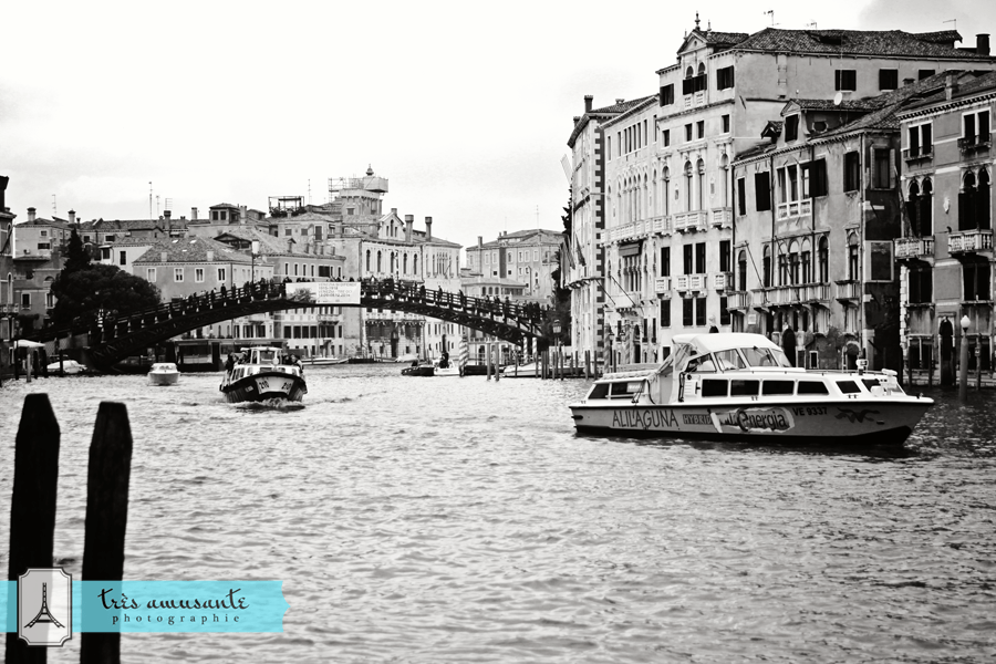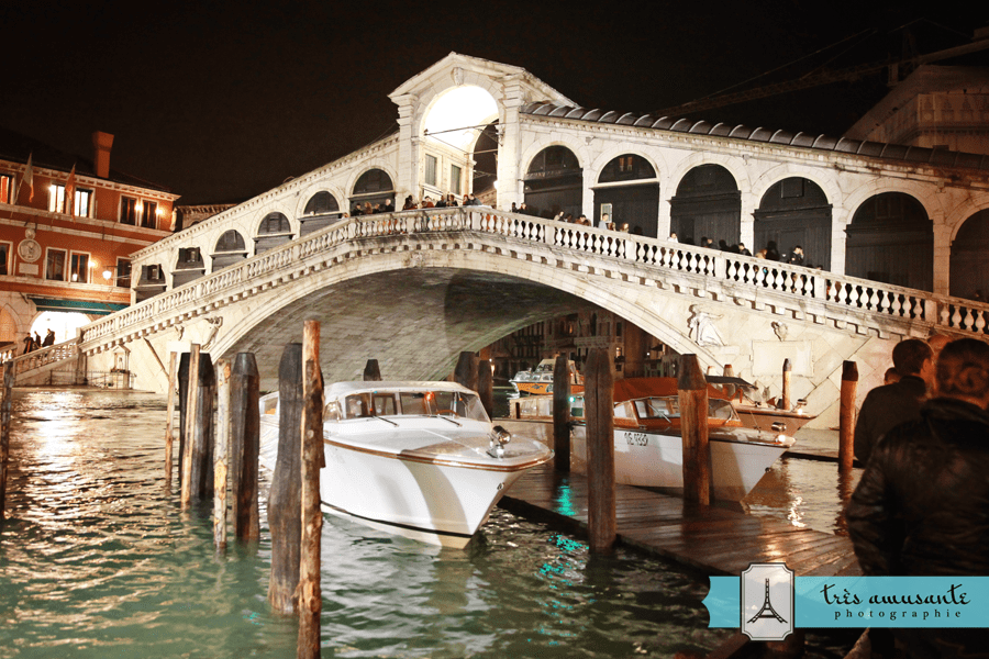 We left home on a Sunday afternoon and arrived in Italy the following day. After an unexpected delay at the airport, due to Justin’s debit card not allowing for overseas transactions (even though he’d arranged for it prior to our departure) and an internationally roaming cell phone call to clear that up, by the time we boarded the vaporetto (water taxi) for Venice, we were semi-delirious. We’d been awake nearly 24 hours straight on two continents while the language changed from English to French to Italian in I don’t even remember how many time zones. Our brains were a bit exhausted and we were out of it, to say the least. But when the Rialto Bridge appeared, we were suddenly wide awake and awestruck.