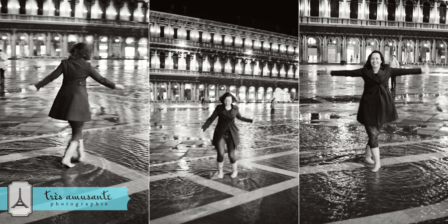 And these ones Justin captured of my enthusiastic splashing as the acqua alta (high water) started filling St. Mark’s Square. Before we left home, I had wished for acqua alta while we were in Venice, and oh boy, did I get my wish. I didn’t know it yet, but these little puddles were nothing compared to what was coming…