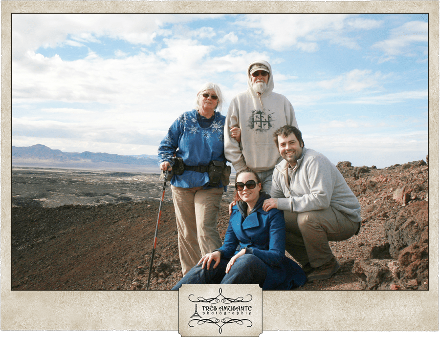 Things were going really well… We’d had a great hike out to the crater, a safe climb up, and found the geocache hidden within. We decided to climb all the way up to the ledge and take in the view from on top of the world. As we started up the trail, Justin spoke the fateful words: “Be careful, the rocks are loose. Don’t slip!”