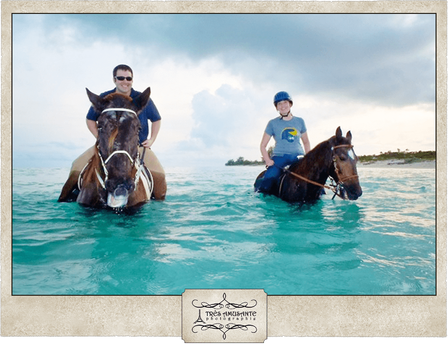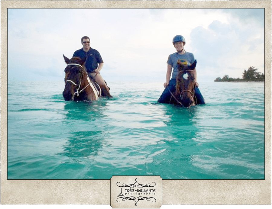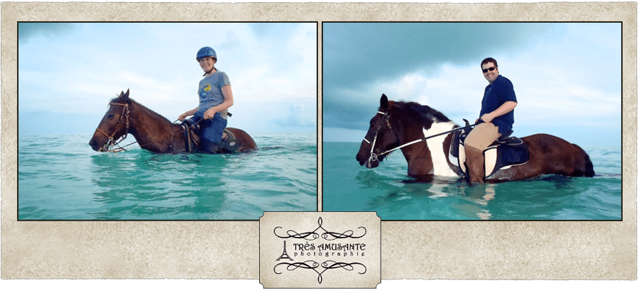 If horseback riding on the beach sounds fun to you, take my word, horseback riding in the ocean is better! Here’s Justin on Thor and me on Diamond in the waters of the Caribbean Sea.