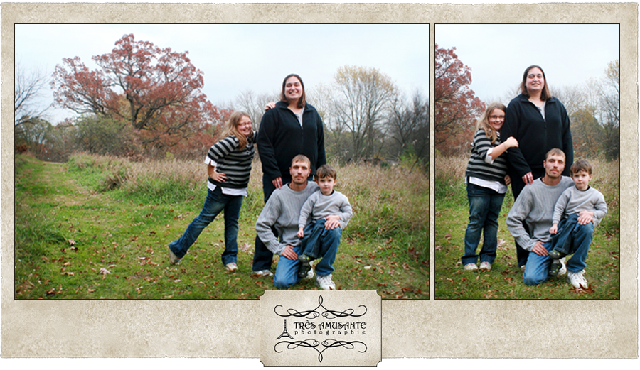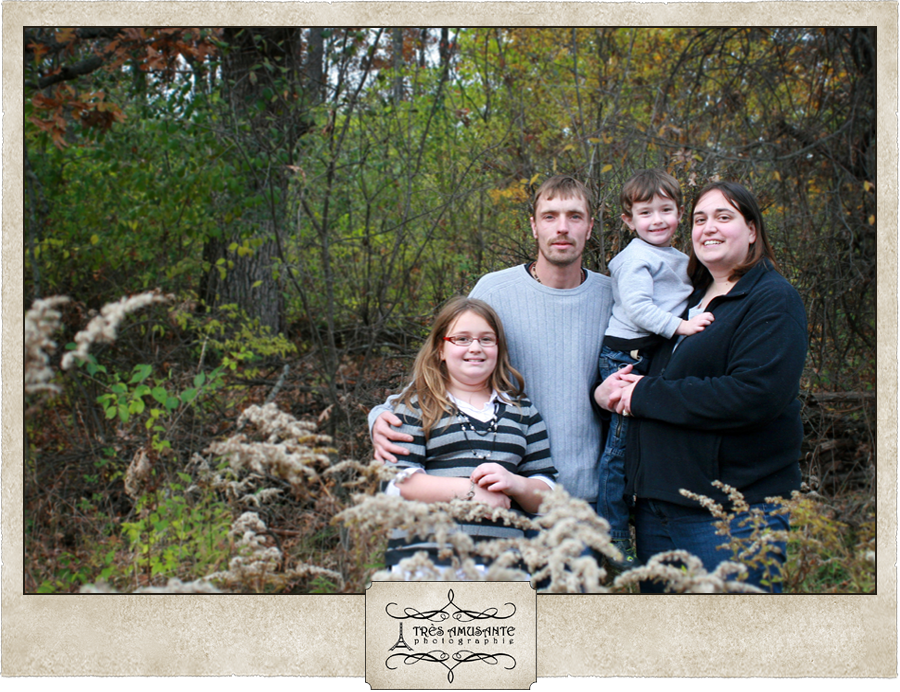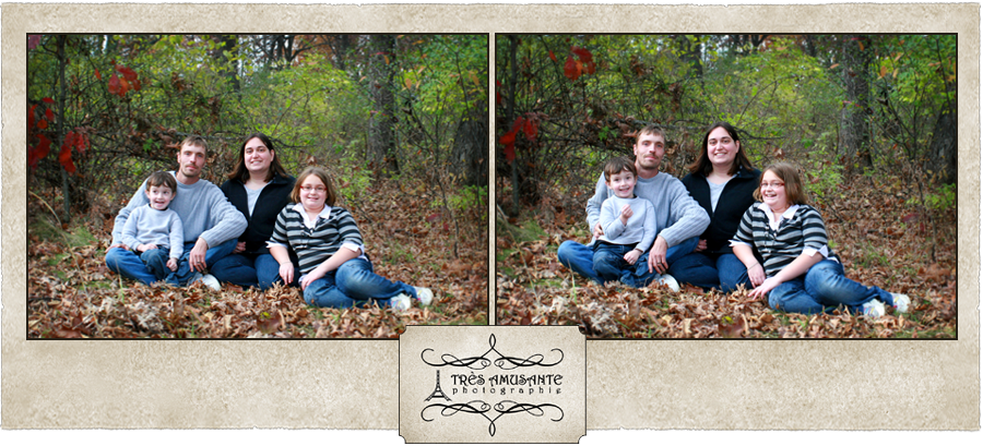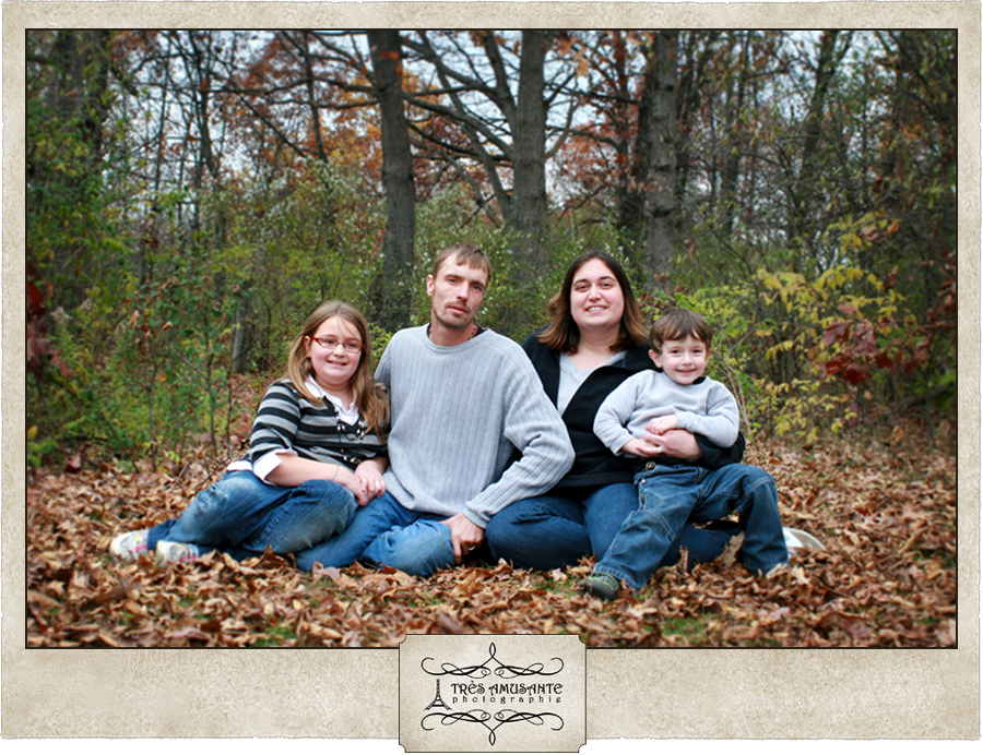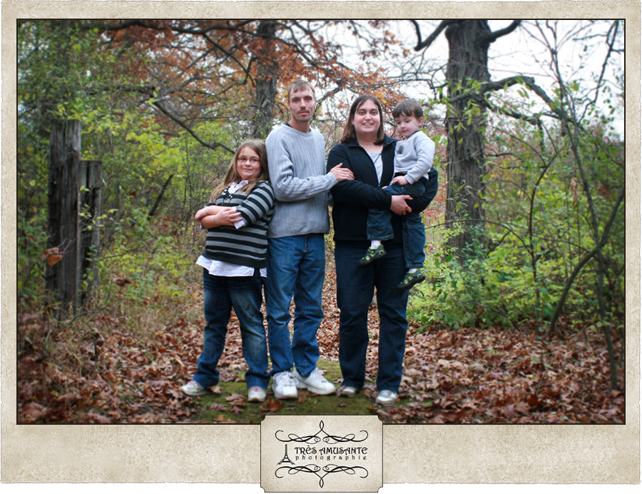 With the trees putting on a spectacular color show, autumn is a great time to get outside in the crisp, cool air for family portraits. My sister Sarah’s clan hadn’t had a family portrait since the youngest member of the family was an infant. Kaden is now a strapping three-year-old, and it was definitely time to update the family photo. So we took a walk through the woods to capture the beauty of the season and the personalities of the family.