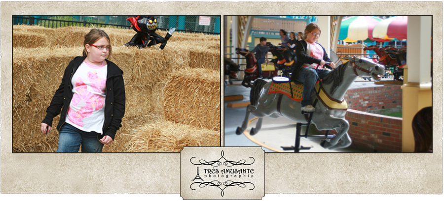 Gracie posed with Linus and the Great Pumpkin before making her way through a spooky straw bale maze. Then it was on to the Cedar Downs Derby Horses for a race around the track.