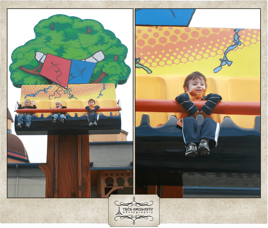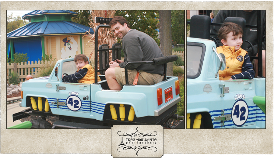 Over in Planet Snoopy, Kaden bounced to the top of the Kite Eating Tree and drove Justin around in a Peanuts Road Rally truck.